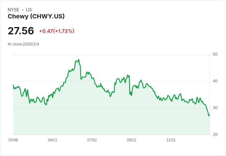 Morgan Stanley調高Chewy目標價至51美元,強調其在不斷增長的寵物市場中的潛力及穩健表現。