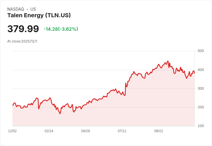 Talen Energy Corporation(NASDAQ:TLN)近期股價激增,從11月21日至28日間上升了7.74%。這一波漲勢主要源於公司在11月25日宣佈完成對賓夕法尼亞州Freedom發電站及俄亥俄州Guernsey發電站的收購,新增近2.9 GW的基載發電能力,使其總發電資產達到10.7 GW。此次交易估計價值約35億美元,將使Talen能夠向超大型資料中心和大型商業使用者提供更多穩定的電力供應。