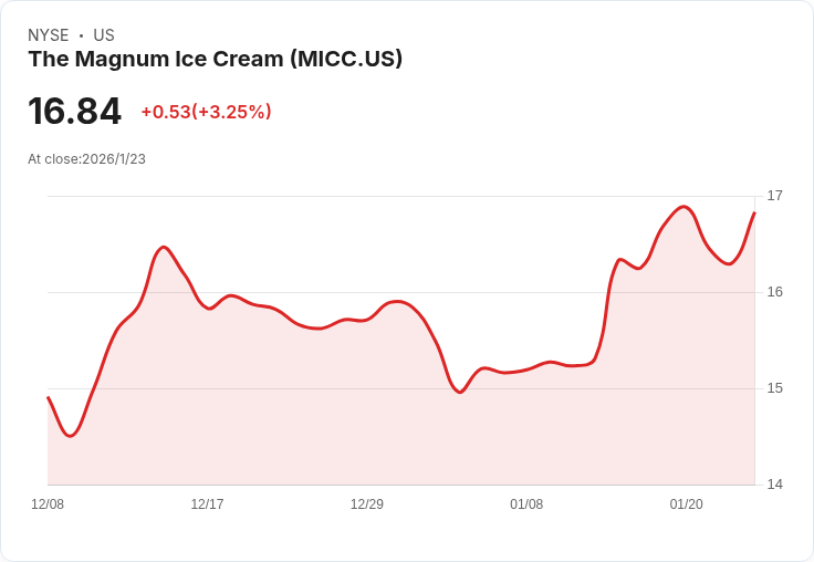 馬格納冰淇淋公司(MICC)近日股價大幅上漲,達到自去年12月8日上市以來的最高點。該公司成立於2025年,是從聯合利華(UL)中獨立出來的,擁有包括馬格南、班傑瑞和可樂等多個全球知名品牌,並在全球冰淇淋市場佔有約21%的份額,年收入達數十億歐元。