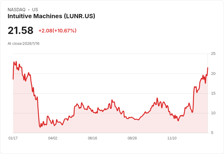 Intuitive Machines (LUNR) 在分析師看好太空產業的背景下,股價上漲10.67%至21.58美元,顯示市場對該領域的樂觀情緒。