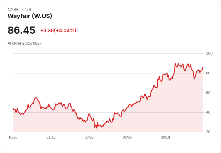 網路家居商品公司Wayfair公佈第三季財報,營收年增8.1%,超過華爾街預期,股價隨之飆升。