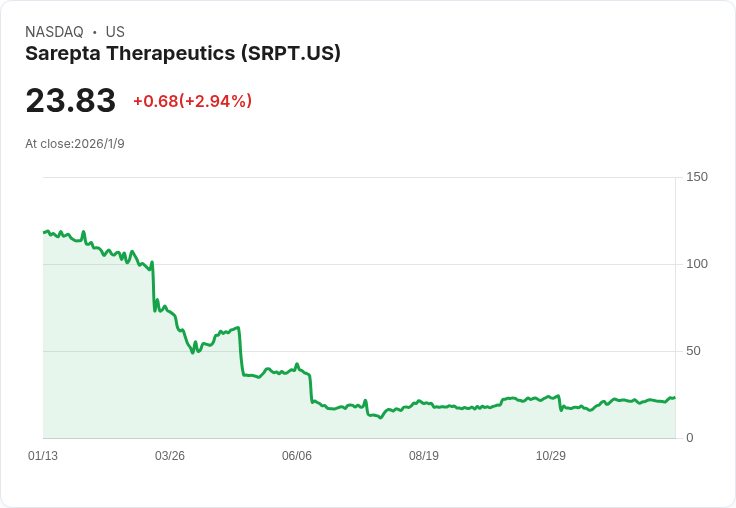 Sarepta Therapeutics (SRPT) 的最新財報顯示,該公司對2025年第四季度的總產品營收預測為369.6百萬美元,明顯低於市場預估的380.61百萬美元。此外,全年營收預測也從原本的2.12億美元修正至1.86億美元,令投資者感到失望。