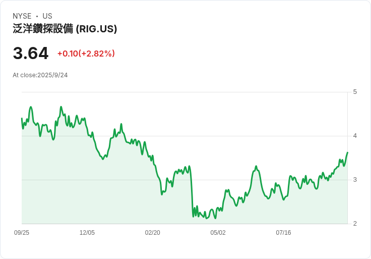 Transocean宣佈將以每股3.05美元的價格公開增發125萬股,預計籌集約3.81億美元資金,用於償還債務。