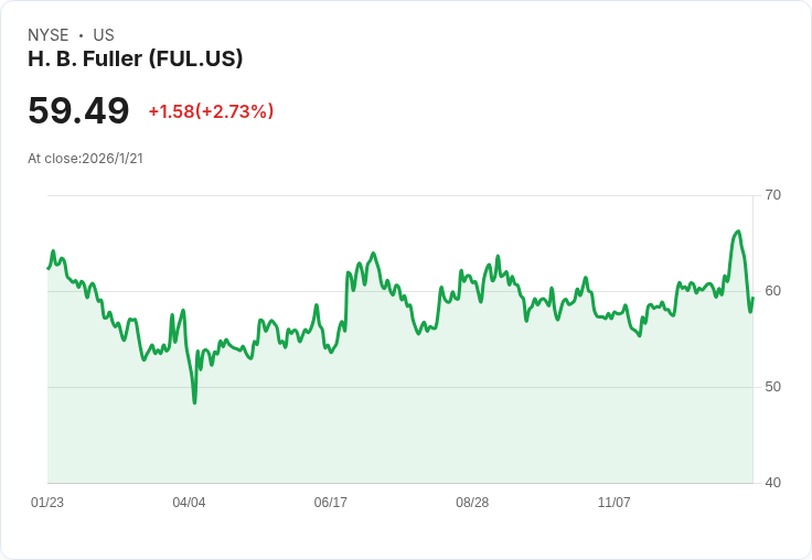 H.B. Fuller 宣佈將發放每股 $0.235 的季度股息,並針對2026年設定了630至660百萬美元的調整後 EBITDA 目標。