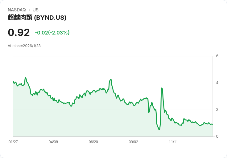Beyond Meat(NASDAQ: BYND)近期股價表現引起廣泛關注,該公司在過去一年內經歷了驚人的價格波動。今年迄今為止,股價上漲14%,但這一成就背後卻隱藏著更複雜的故事。去年十月,由於短線交易者湧入,股價曾急升超過1000%。然而,這一牛市迅速結束,之後股價大幅回撤,目前距離52周高點已下滑約79%。
