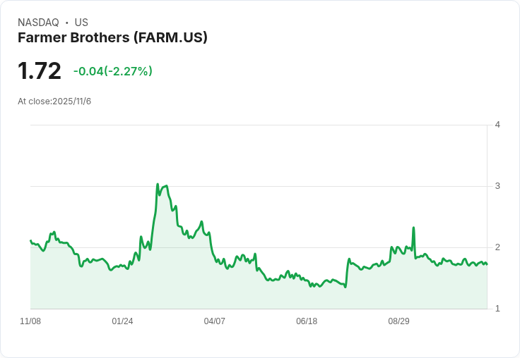 農夫兄弟公司(Farmer Bros. Co., FARM)於2026財年第1季的財報中指出,儘管運營效率有所提升,但仍然面臨來自經濟環境的不利挑戰。首席執行官約翰·摩爾(John Moore)表示,本季度淨銷售額為8160萬美元,同比下降4%,而調整後的EBITDA則保持在140萬美元不變。他強調,公司正在努力推動收入增長並應對客戶需求和咖啡供應量的減少。