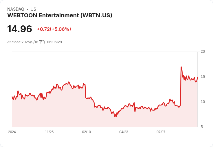 WEBTOON娛樂(NASDAQ:WBTN)股價暴漲60%。這一激增源於華特迪士尼(DIS)宣佈與Webtoon達成合作,共同開發一個包含超過35,000部迪士尼漫畫的數位平臺,包括漫威、星際大戰及20世紀影業的作品。雖然財務條款尚未公開,但迪士尼還將收購Webtoon 2%的股份。該平臺將提供多種格式,並針對Marvel Unlimited及Disney+使用者推出優惠。