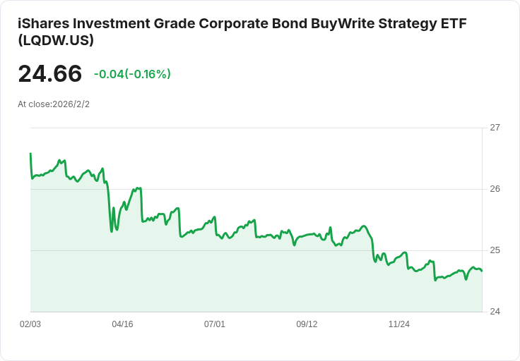 隨著利率環境變化,iShares投資級企業債券買寫策略ETF(LQDW)於1月30日宣佈將支付每股$0.2178的分紅,此次分紅將於2月6日發放,登記截止日期為2月3日。該ETF目前顯示出4.32%的30天SEC收益率,為投資者提供了一個穩定的收入來源。