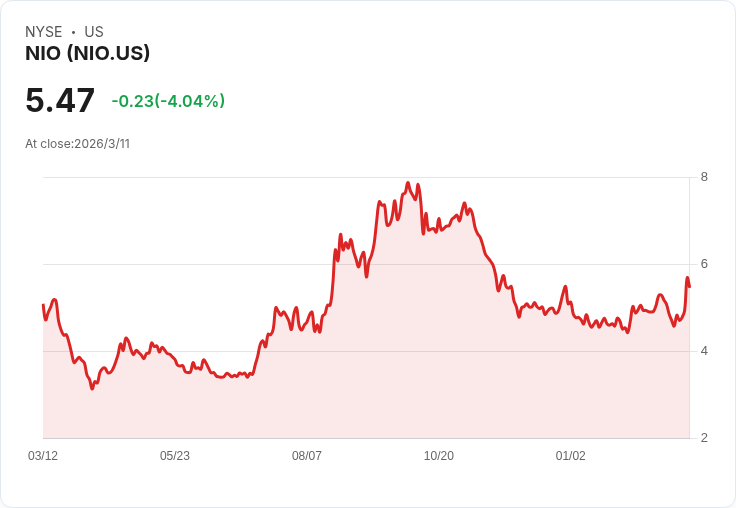 Nio(NYSE:NIO),這家專注於轎車和SUV的電動車製造商,在週三收盤時報每股5.48美元,下跌了3.86%。此波股價變化是因為交易者正在消化該公司第四季度財報超出預期、首次實現季度盈利以及混合的分析師反應,同時持續評估其獲利前景及擴充套件計劃。當天交易量達到7760萬股,較過去三個月平均的4440萬股高出約75%。