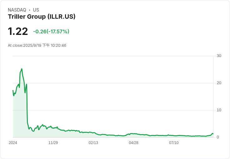 Triller Group Inc.(NASDAQ: ILLR)在最近一個交易日中遭遇重創,股價下跌17.57%,收於每股1.22美元。這波跌勢源於投資者在前一天29%的反彈後選擇獲利了結。此外,該公司連續三天的交易價格均超過1美元,這是維持納斯達克上市所需的最低出價要求。
