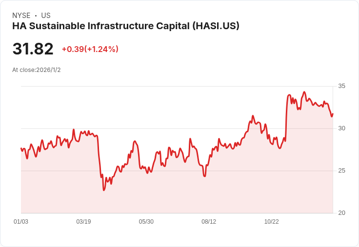 根據最新報告,HA可持續基礎設施資本的共識一年的平均價格目標為40.27美元,這意味著相較目前水平有26%的上漲潛力。截至12月30日,13位分析師對該股票給予了評級,其中11位建議買入,2位維持觀望。而Mizuho Securities則在12月23日重申對HASI的樂觀態度,並設定34美元的目標價,暗示約6.5%的小幅上漲。