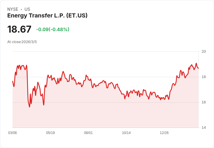 能源傳輸公司(Energy Transfer, ET)近期股價走勢引起投資者注意,目前交易價格為18.67美元,雖然短期表現略顯疲弱,但過去三個月已實現11.13%的收益,五年總回報更是高達230.92%。這樣的背景使得許多投資者開始重新思考該公司的價值。