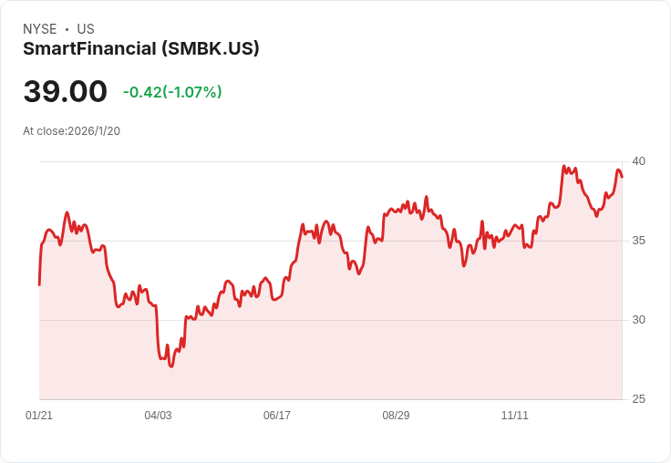 SmartFinancial公佈第四季非GAAP每股盈餘0.81美元,超出市場預期;營收達到5331萬美元,年增率高達13.9%。