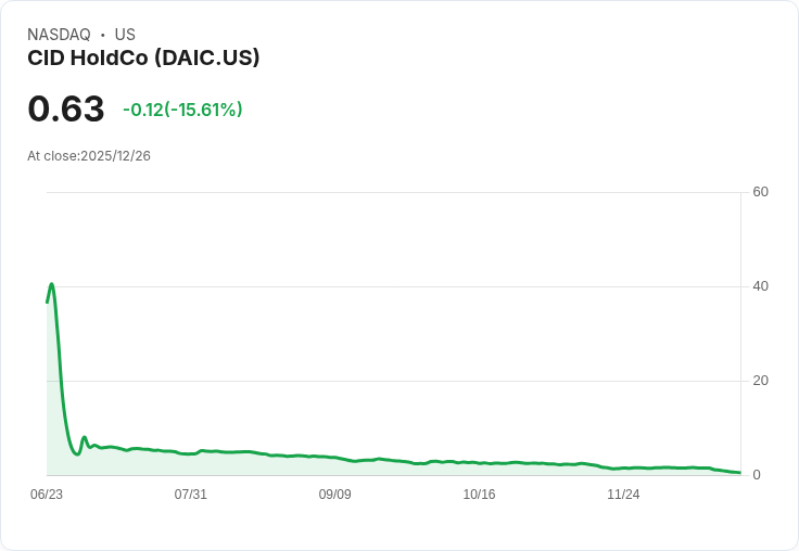 儘管近期股價上揚,但CID HoldCo過去12個月內股價已下滑92.33%,顯示出公司面臨的重大挑戰,投資者應謹慎分析其長期表現。根據市場資料,CID HoldCo目前市值為2333萬美元,52周高點為74.40美元,低點為0.83美元。