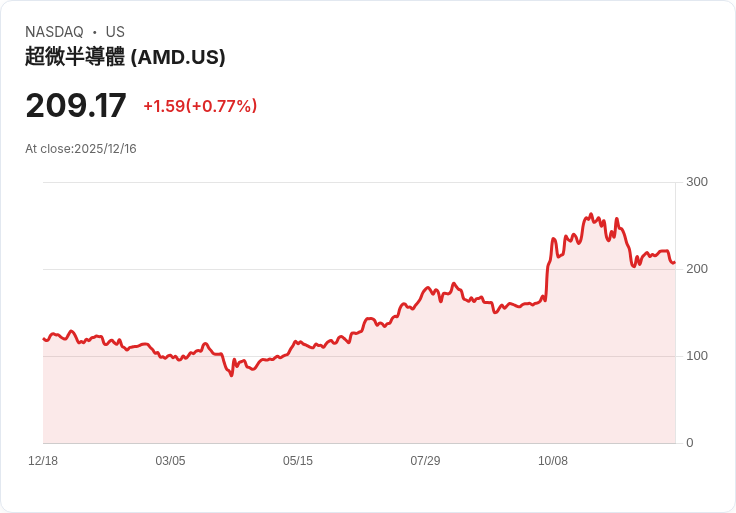 新聞:隨著投資者消化強勁的 AI 相關勢頭,AMD 的股票價格在近期高位附近趨於穩定。不過,市場對該公司能否迅速縮小與 Nvidia 在資料中心加速領域差距的疑慮依然存在。透過 OpenAI 的 GPT 模型進行分析,AMD 當前交易價格為 207.58 美元,預測從 12 月中旬至 1 月初的平均價格約為 207.30 美元,顯示出未來幾周股價可能會橫盤整理,缺乏明確的推進方向。