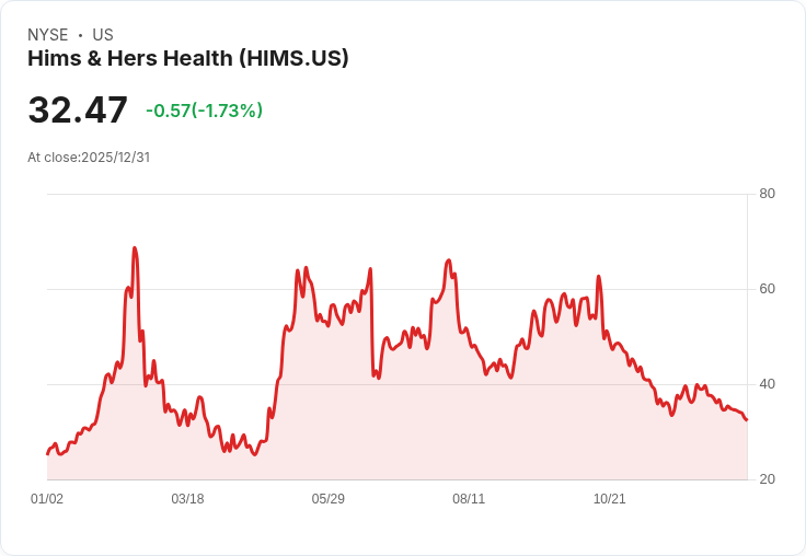 Hims和Hers健康公司股價下降,選擇權交易量正常,但看漲期權仍優於看跌期權。