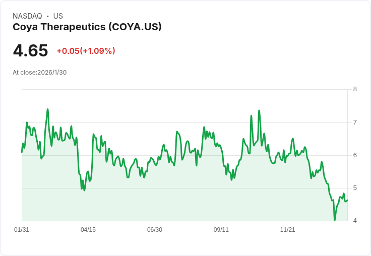 Coya Therapeutics (COYA)近日宣佈與投資者簽訂了一項具體的證券購買協議,計劃以每股$4.40的價格發售總計252.2萬股普通股。此次私募發行預計將於1月30日左右完成,前提是滿足慣常的交割條件。參與本次發行的主要投資者包括Dr. Reddy’s(RDY)和Greenlight Capital,後者為公司的現有機構股東。