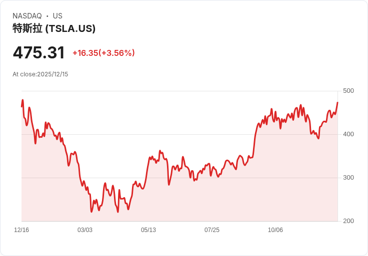 特斯拉的股價過去一年波動劇烈,最低曾跌至214.25美元,而最高則達488.54美元。在競爭日益激烈的電動車市場及美國稅收優惠逐步消失的背景下,特斯拉核心汽車業務的增長速度放緩,第三季度的汽車收入僅同比增加6%,達到212億美元。