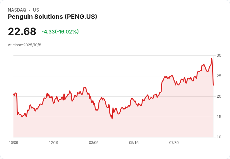 企鵝解決方案(Penguin Solutions, PENG)在截至2025年8月29日的12個月內遭遇1680萬美元的一次性虧損,這影響了其最近剛實現的盈利。過去五年,公司雖然維持正的淨利潤率,但平均每年的盈餘變化卻達到-15.6%。預計未來收入將以9.9%的速度增長,符合美國市場的整體增長趨勢。