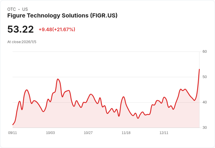 Figure Technology Solutions, Inc. (NASDAQ:FIGR) 因市場預期聯準會將進一步降息,股價在週一創下新高,漲幅達21.67%。