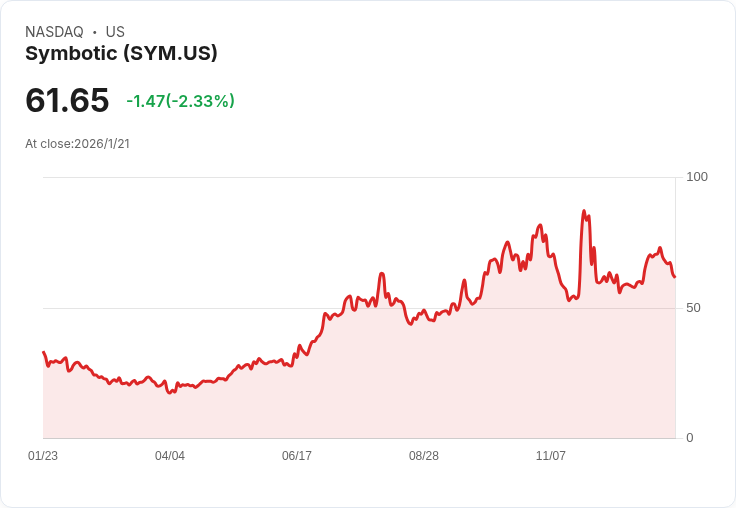 Symbotic Inc (NASDAQ:SYM) 股價目前回升4%,分析師預測未來仍有上漲空間。