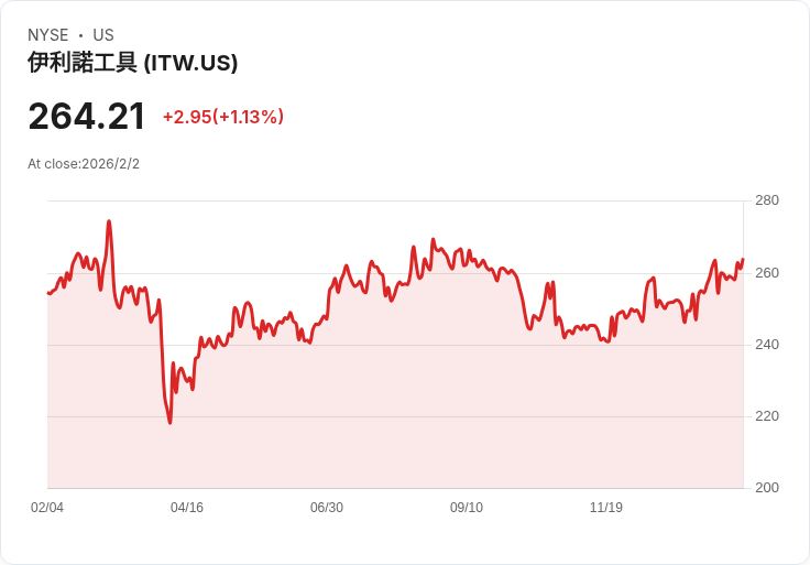 Illinois Tool Works Inc. (ITW) 是一家全球領先的多元化工業製造公司,專注於為各種終端市場提供高效、創新的解決方案。公司擁有七個主要業務部門,包括汽車原始設備製造商、食品裝置、測試與測量及電子、焊接、聚合物與流體、建築產品以及特殊產品。ITW 以其卓越的運營模式和持續的創新能力而聞名,致力於為客戶提供優質的產品和服務。