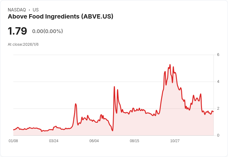 在週三下午的交易中,Above Food Ingredients (ABVE) 的股價驟然上揚,這家專注於再生食品成分的公司確認,其將於2026年1月底前報告截至2025年1月31日的經審計財務結果,滿足所有納斯達克報告要求。該公司的財報提交被視為其與Palm Global合併的下一階段的重要一步。