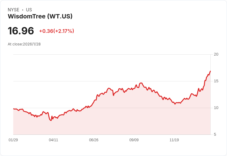 智慧樹公司(WisdomTree, WT)定於1月30日星期五,在市場開盤前公佈其2025年第四季的財報。根據市場共識,每股盈餘(EPS)預估為0.23美元,較去年同期增長35.3%;而營收預估則為1億4260萬美元,同比增長28.8%。