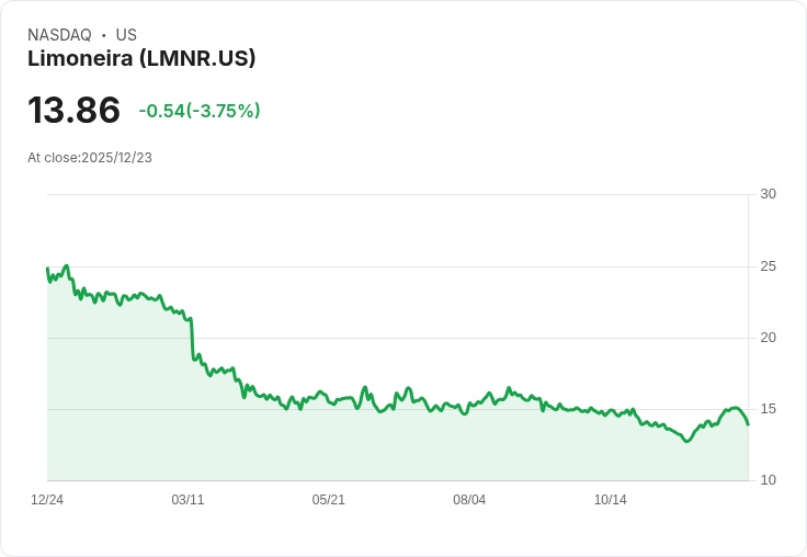 在近期的財報中,Limoneira公司(LMNR)公佈其GAAP每股收益為-$0.49,較市場預期低了$0.38,這一數據引發投資者關注。然而,該公司的營收表現卻相當強勁,達到了$42.82M,比預期多出$7.47M。此訊息顯示出Limoneira在面對挑戰時仍能保持穩定的收入來源。