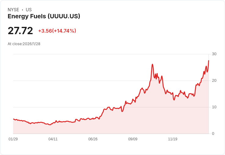 隨著美國能源部推出核燃料供應鏈建設計畫,能源燃料股大幅上漲,其他相關公司也紛紛跟進。