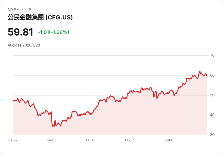 在週三的交易中,公民金融集團(CFG)股價上漲了6%,這主要是因為該行公佈的2025年第四季財報顯示其盈利和收入均超出市場預期。根據報告,該季度每股盈餘達到1.13美元,高於分析師平均預測的1.11美元,且較第三季度的1.05美元及去年同期的0.83美元有所增長。