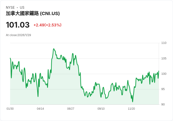 加拿大國家鐵路公司公佈第四季財報,非GAAP每股盈餘達C$2.08,營收為C$44.6億,並釋出2026年成長預期。