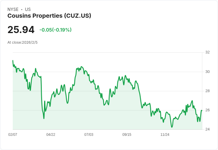 Cousins Properties公佈2025年第四季業績,預計2026年FFO將達到每股2.92美元,目標是提升佔用率至90%。