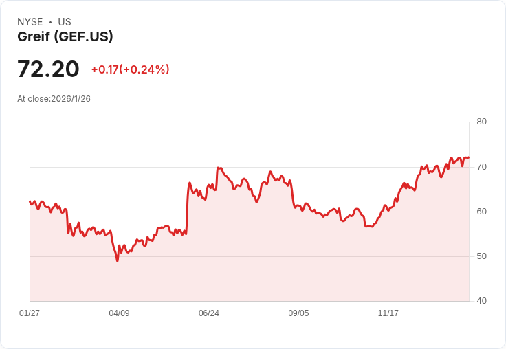 全球包裝領導者Greif(GEF)即將在1月27日市場收盤後公佈其2026年第一季的財報,引起投資者關注。根據市場共識,每股盈餘(EPS)預估為0.68美元,較去年同期增長74.4%;然而,預計營收將下降20.5%,達到10.1億美元。