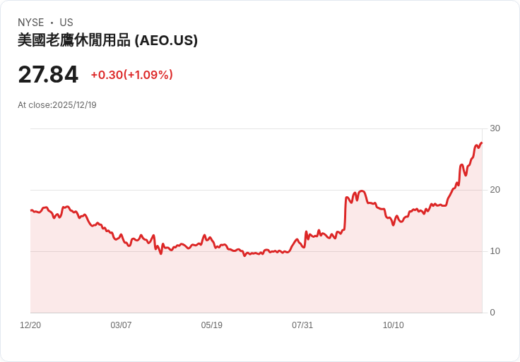 在2025年消費者非必需品市場中,美國鷹服飾(AEO)以65.21%的漲幅成為最佳表現的服裝零售股票。