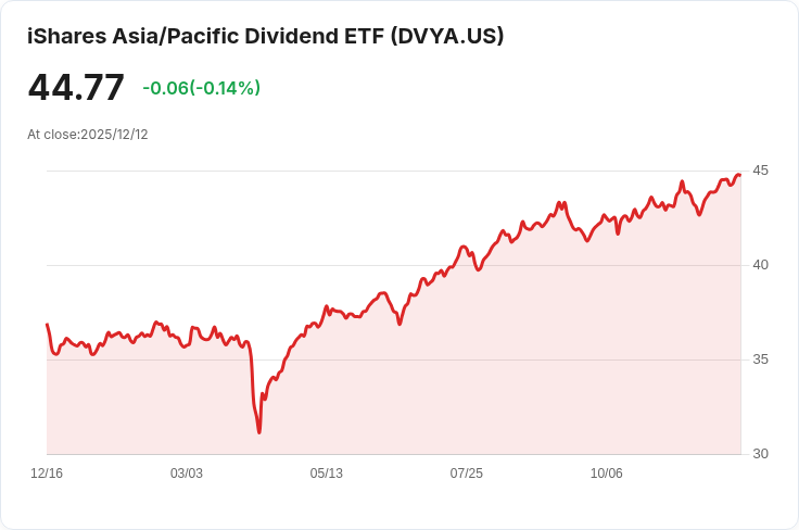 iShares亞太股息ETF(DVYA)於近日宣佈,其董事會決定發放每股$0.3817的季度股息,此訊息吸引了投資者的注意。根據11月30日的資料,該基金的30天SEC收益率為4.29%。此次股息將於12月18日支付,記錄日期為12月15日,而除息日亦為12月15日。這意味著在此日期前持有股份的投資者將能夠獲得此次的分紅。對於尋求穩定收入來源的投資者而言,DVYA的高股息收益率無疑是一個具吸引力的選擇。然而,也有觀點認為市場波動可能影響未來的股息支付能力,因此投資者應謹慎評估風險。在全球經濟形勢變化的背景下,DVYA的表現值得關注,未來或將成為亞洲及太平洋地區股票投資的一個重要指標。