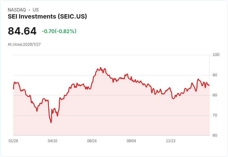 SEI投資公司公佈第四季財報,每股盈餘為$1.38,收入607.93百萬美元,均超出市場預期,顯示業務穩健成長。