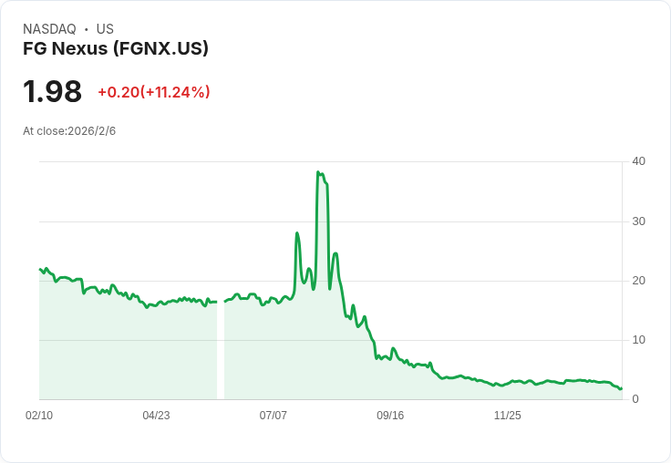 FG Nexus (FGNX) 今日宣佈將進行一項重大的財務調整,計劃在2026年2月13日實施1拿5的反向股票分割,此舉將導致其流通在外的股份數量由32.78百萬減少至約6.56百萬。在這次變動中,授權的普通股數量也將相應地從9000億減少至1800億。此訊息公佈後,FGNX 的股價在盤前交易中下跌了11%。