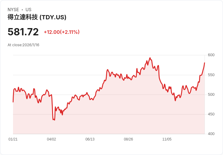 特德萊科技(TDY)定於1月21日發布第四季財報,市場普遍預測每股盈餘為5.83美元,營收達15.7億美元。
