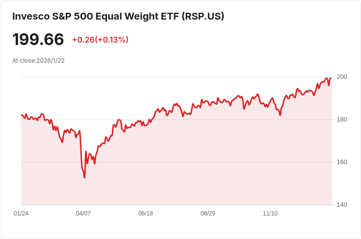 她形容RSP是一種“奶奶式交易”,在市場可能面臨波動時能提供更好的防禦性。此外,Talkington預測2026年市場將持續存在波動性,這使得以等權重指數為主的投資策略成為應對未來潛在風險的理想選擇。