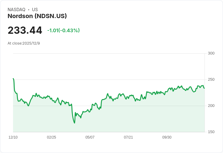 北森公司(Nordson Corporation, NDSN)定於12月10日美股收盤後發布其2025年第四季財報。根據市場共識,每股盈餘(EPS)預計為2.93美元,較去年同期增長5.4%;而營收則預估達7.6098億美元,同比增長2.3%。在過去兩年中,北森公司有75%的機會超越EPS預期,63%則超越營收預期。然而,在最近三個月內,EPS預估出現了兩次上調和兩次下調,而營收預估則經歷了一次上調與三次下調。
