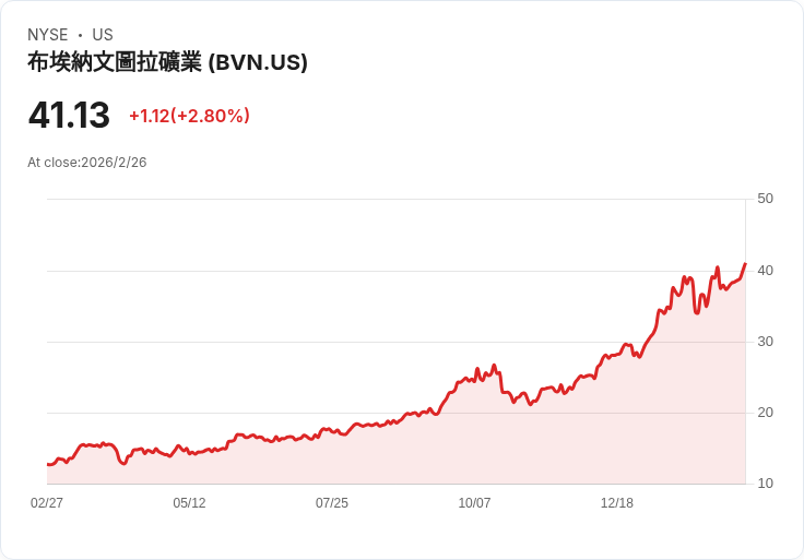 布恩文圖拉礦業公司第四季每股盈餘達$1.51,營收623.4百萬美元,同比增長108.1%,顯示出強勁的生產表現。
