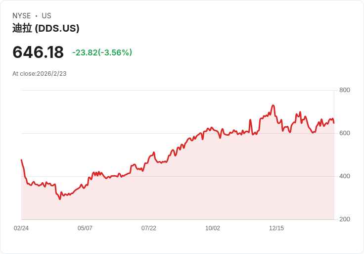 Dillard's近日公佈了其2026年第四季度的財報,引起市場關注。該公司報告顯示,GAAP每股盈餘為13.05美元,超出分析師預估的11.49美元,表現亮眼。然而,其總營收19.9億美元較去年同期下降2.9%,並且低於預期40百萬美元。