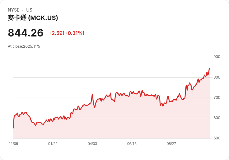 McKesson Corporation是一家全球領先的醫療保健服務和資訊技術公司,專注於提供藥品分銷、醫療供應鏈管理和健康資訊技術解決方案。公司致力於透過創新和高效的運營來改善患者的健康結果,並支援醫療機構和製藥公司的需求。McKesson的業務遍及北美和歐洲,擁有廣泛的客戶群體,包括醫院、診所、藥房和其他醫療保健提供者。