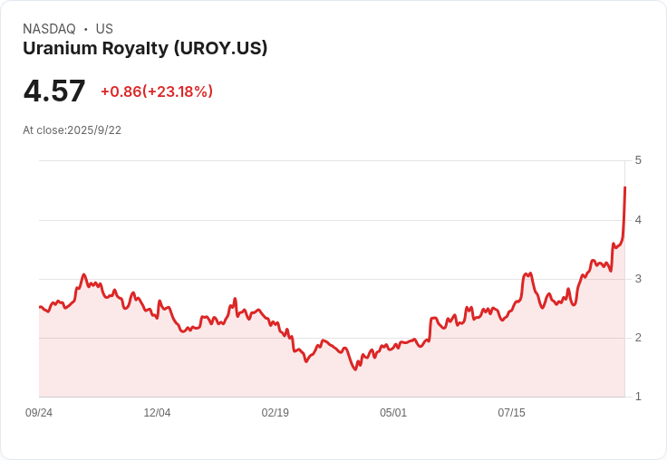 Uranium Royalty (NASDAQ: UROY) 股價因雷蒙德·詹姆斯將其評級從「跑贏大盤」下調至「市場表現」而下跌2.1%。分析師指出估值過高。