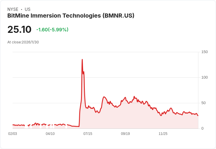 BitMine Immersion Technologies因市場崩盤,其以太坊持有的虧損已超過60億美元,凸顯加密貨幣策略風險。