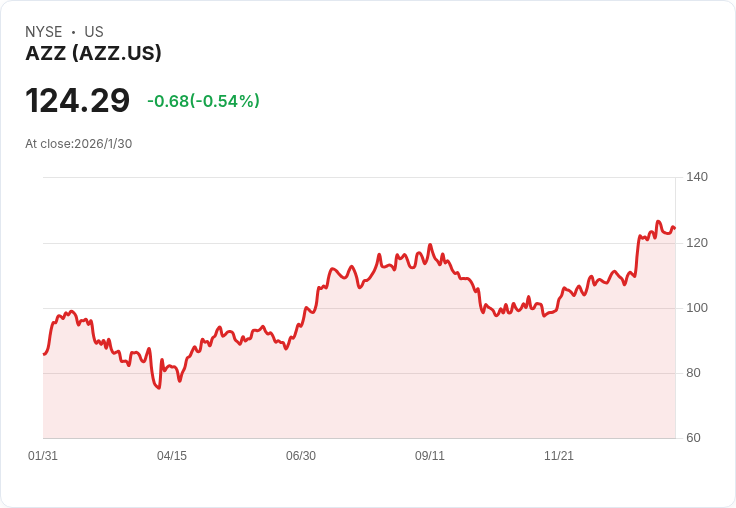 截至2026財年的第三季度,AZZ擁有約3000萬股流通在外的股份。根據公司的說明,回購可以透過公開市場或私人交易進行,包括依據10b5-1交易計畫執行。此訊息發布後,AZZ的股價在盤後交易中保持穩定,報124.29美元。