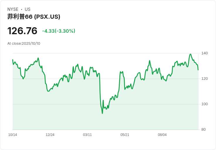 菲利普斯66(NYSE:PSX)股價在經歷六天的連續下跌後,週一上漲2.22%,顯示出市場信心回升。