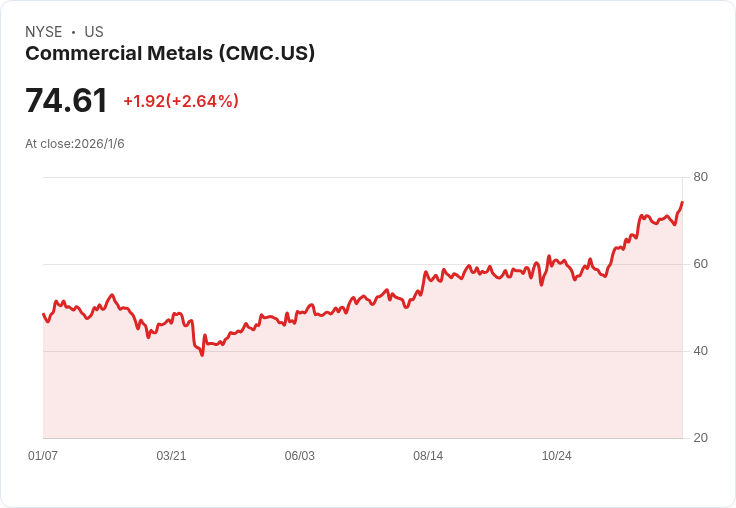 商業金屬公司(CMC)定於1月8日市場開盤前發佈2026年第一季的財報,引起投資者高度關注。根據分析師預測,該公司的每股盈餘(EPS)預計為$1.54,較去年同期成長97.4%;而預估營收則可望達到$20.6億,同比增長7.9%。