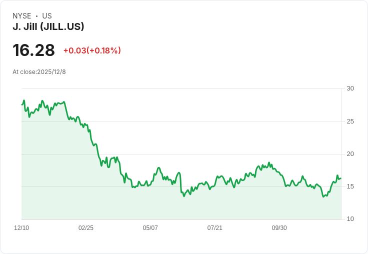 新聞:隨著J. Jill(股票程式碼:JILL)定於12月10日早晨開盤前發佈其第三季度財報,市場投資者的目光再次聚焦在這家服飾零售商上。根據最新共識預測,J. Jill 的每股盈餘(EPS)預計為0.59美元,同比下降33.7%;而營收則預期達到148.38百萬美元,同比微幅下滑1.9%。